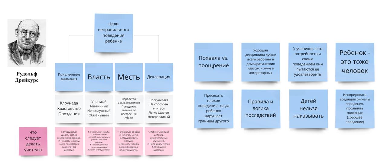 Мы не будем останавливаться на ветке Скиннера, хотя даже там есть плюсы, а пойдем в сторону Роджерса и его установки “человек, ты знаешь, как лучше тебе, а я пойду за тобой и помогу открыть твой потенциал”. И сегодня я расскажу вам про Рудольфа Дрейкурса и его теорию социальной дисциплины.